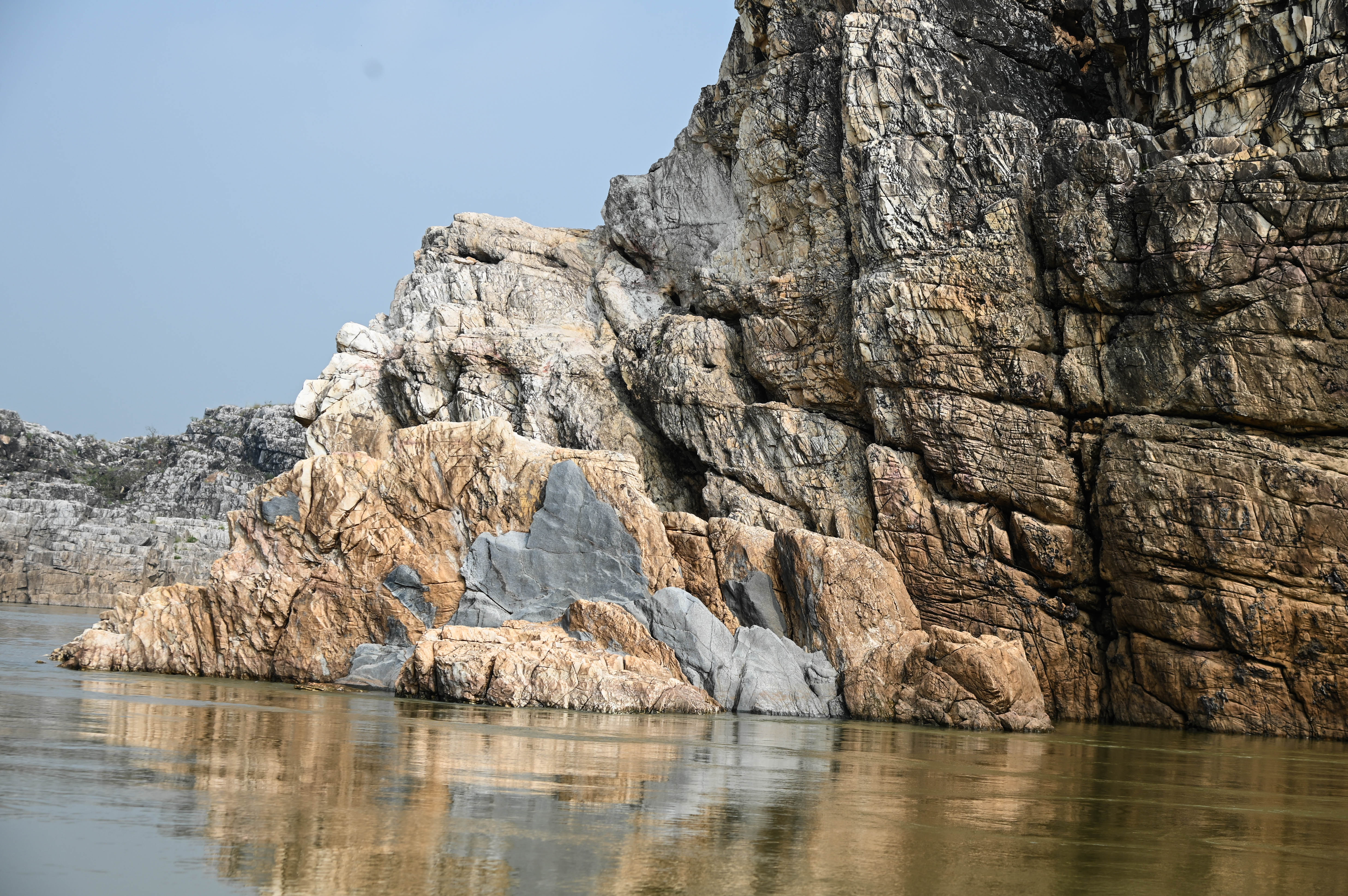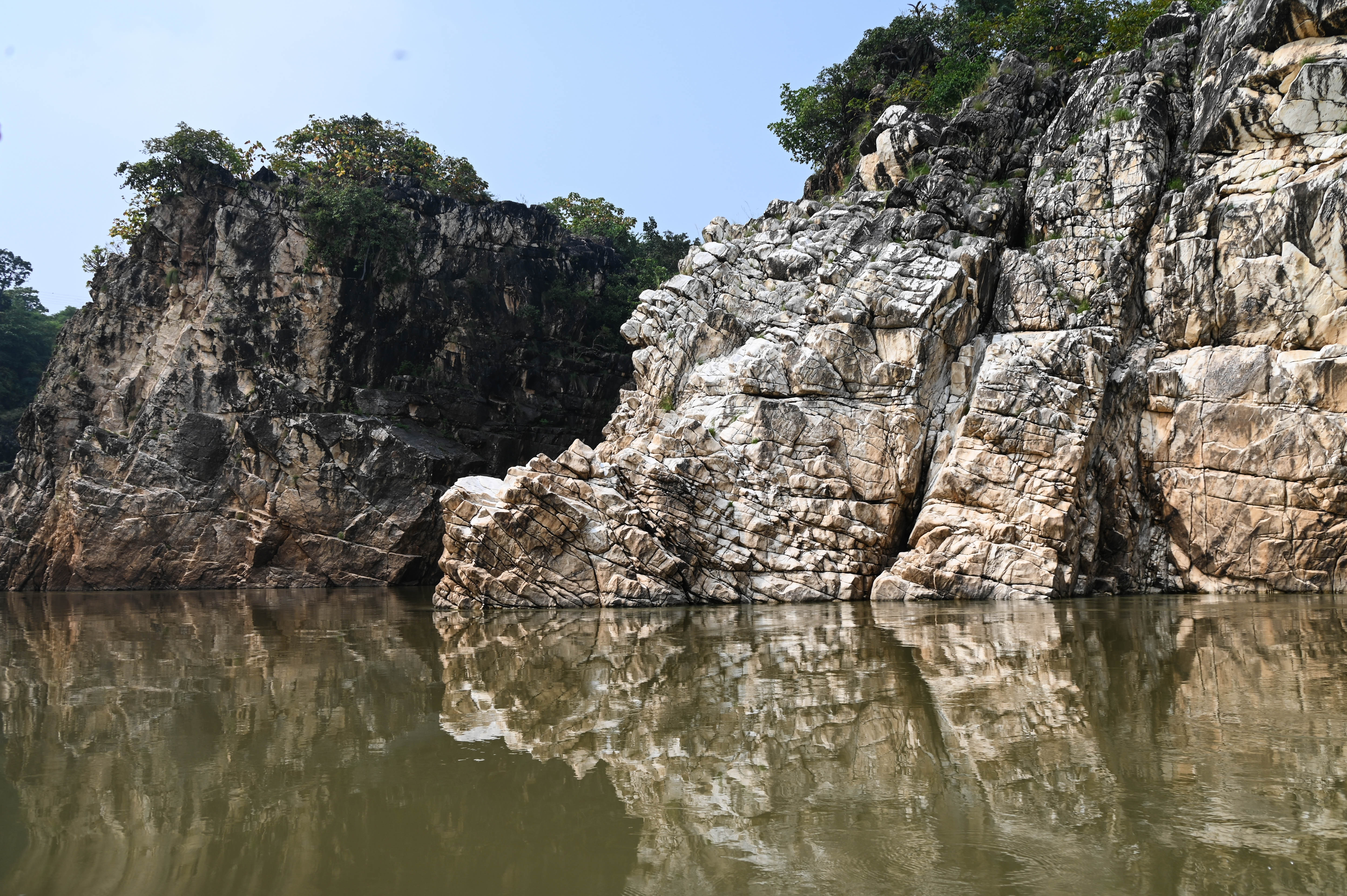 Our forays into the other Zones were rewarding as well. We saw Noor, a 16 year old tiger and probably the oldest female tiger in Ranthambhore in Zone 6. We tracked her pug marks and saw her walking on the track to the chain link that separates Zones 6 and 1. Noor is Sultana’s mother and one of the most beautiful tigers that one will see. Zone 5 was where we saw a the male T121, a tiger we hadn’t seen in the past. The top of the hill our jeep climbed to was a small plateau that sloped gently down to a stream. As we reached the top, we saw a tiger making its way to the water. We followed T121 to the water where he rested for a while. He then got up and walked across the stream to climb the rocky face and walked on the ledge before disappearing from view. This was a beautiful experience.