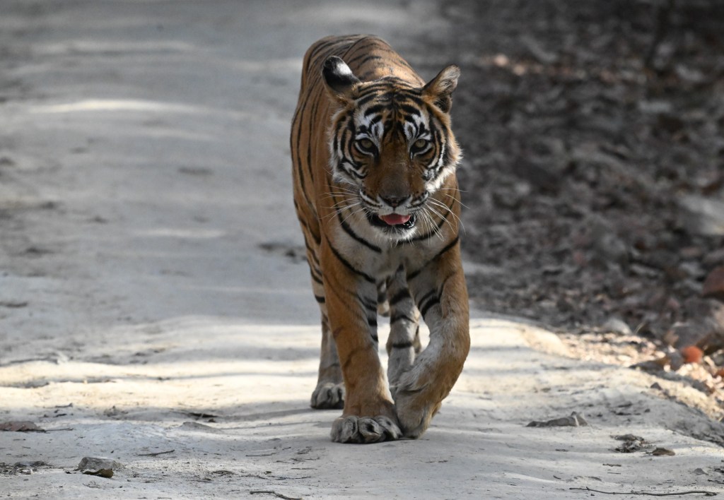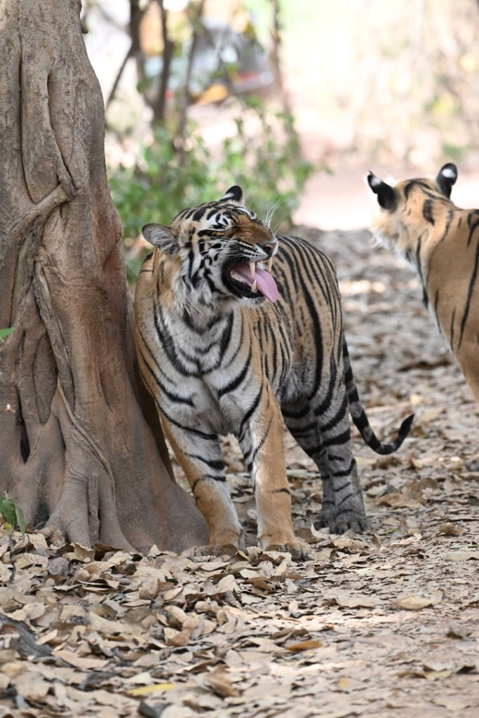 We have been travelling to Ranthambore for more than 25 years and over a period of time we have come to realise that the animals have become accustomed to jeeps and crowds and the chaos during a sighting. Deer do not scuttle out of the way anymore. Similarly, tigers walk past nonchalantly. Just as it happened to us. Noor was completely comfortable following our jeep and in most of our photographs, we see her looking directly into the camera. It was the same, during our afternoon at Zone 3, with Riddhi and cubs. Or, it is the complete confidence of owning the territory and the ability to react to any untoward situation.